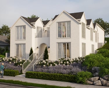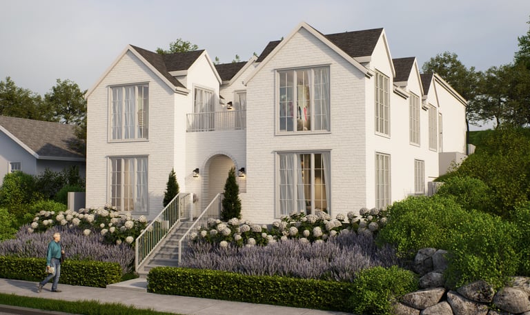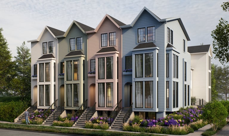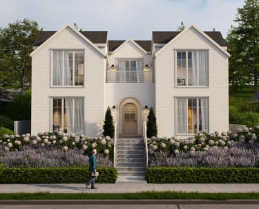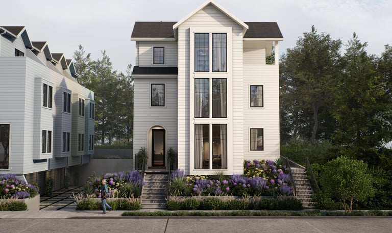 Inspired by the architectural character of the Phinney Ridge neighborhood, the homes feature a soft, pastel palette paired with pitched rooflines and arched entries that nod to classic Victorian and cottage-style design. Lush landscaping and oversized windows bring a sense of warmth and connection to the outdoors, blending timeless charm with thoughtful, contemporary details